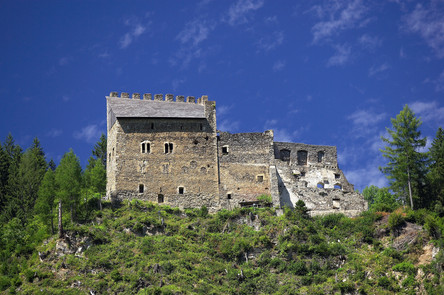 Abbildung im Codex Manesse. Ulrich von Liechtenstein ist als zimiergeschmückter Turnierritter dargestellt, „verkleidet“ als Dame Venus (mit Amorpfeil und Fackel). In dieser Form unternahm er laut seiner Lebensbeschreibung 1227 eine große literarische Turnierfahrt; Mitte: Ulrichs Grabstein in Frauenburg/Unzmarkt; rechts: Ulrich bei einem Turnier; rechts außen: Frauenburg bei Unzmarkt im Murtal, wo Ulrich v. Liechtenstein begraben liegt.